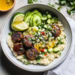 Harissa chicken meatballs are a flavorful and easy-to-make dish that brings the vibrant spices of North Africa to your table. Juicy ground chicken meatballs seasoned with harissa paste are paired with fluffy couscous and a refreshing cucumber herb salad. Perfect for weeknight dinners or entertaining guests, this meal is sure to impress with its bold flavors and delightful textures. Enjoy a culinary adventure that’s quick to prepare and satisfying to eat!