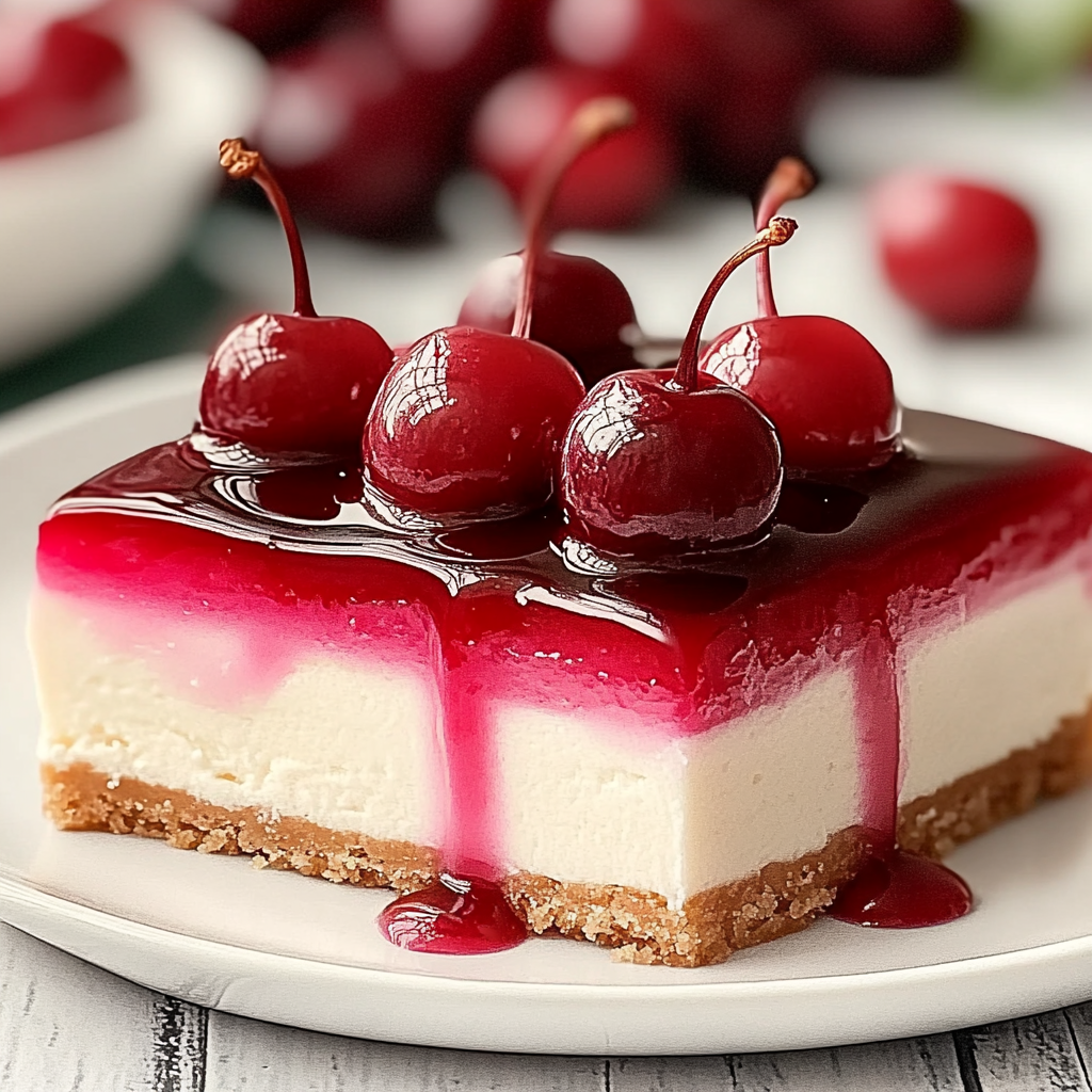 Serve and Enjoy!: Once set, slice into servings and watch as everyone dives in! Serve chilled with extra cherries on top if desired—the more, the merrier!