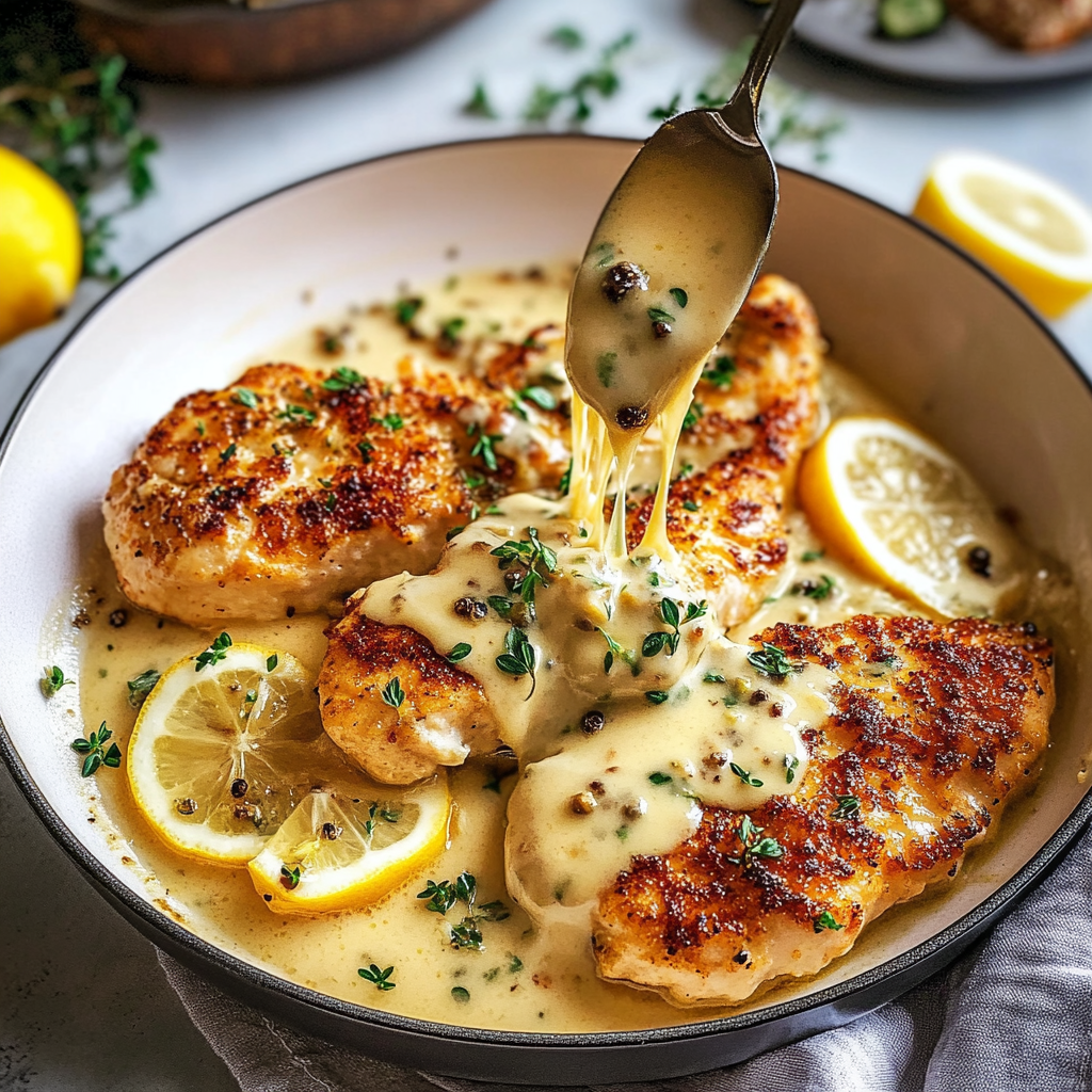Indulge in the delightful flavors of this Creamy Lemon Chicken with Parmesan Sauce. This dish combines tender chicken breasts with a rich, velvety sauce infused with zesty lemon and savory Parmesan, making it a perfect meal for any occasion. Easy to prepare yet impressive enough for a dinner party, this recipe will leave your guests asking for seconds!