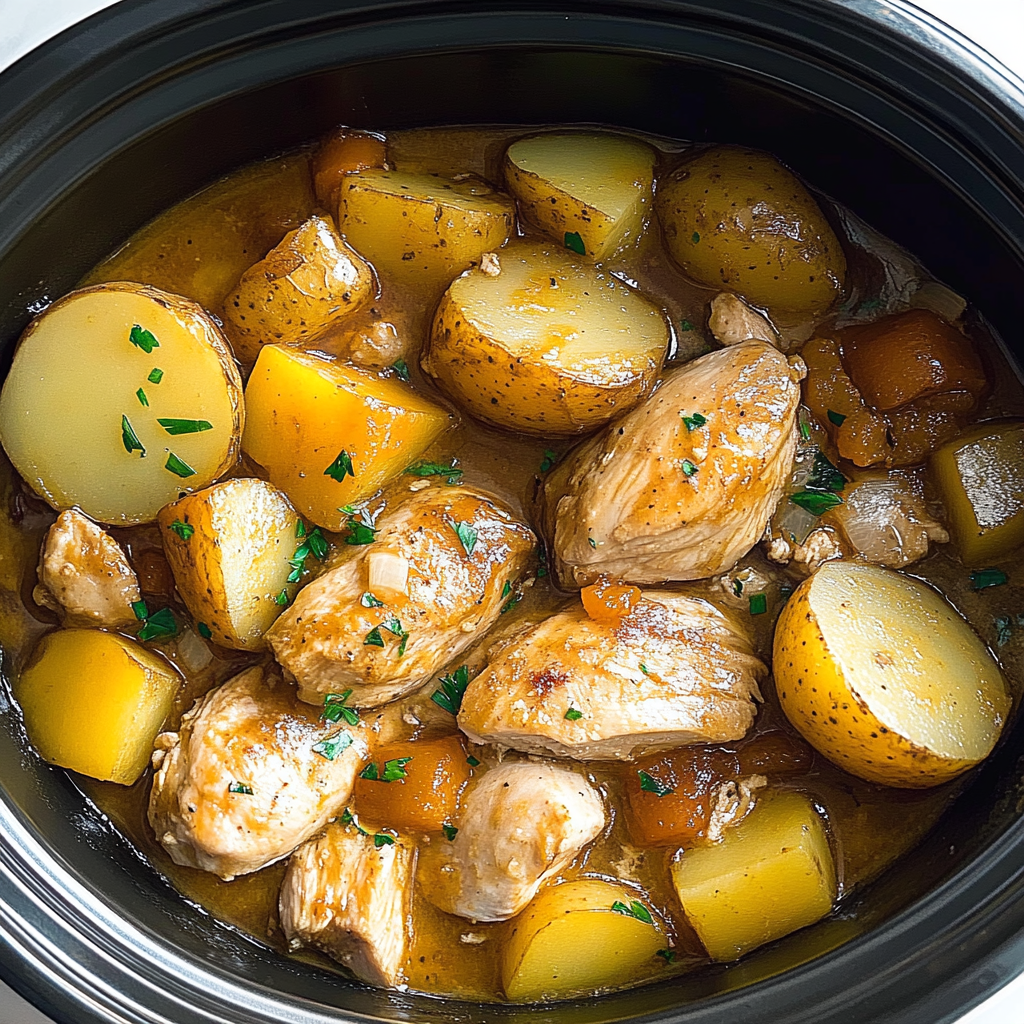 Irresistible Crockpot Chicken and Potatoes is a comforting one-pot meal that brings the family together with its rich flavors and delightful aroma. Tender chicken breasts simmer alongside colorful baby potatoes, seasoned with fresh rosemary, garlic, and paprika for an unforgettable dining experience. Perfect for busy weeknights, this easy recipe allows you to set it and forget it while enjoying quality time with loved ones.